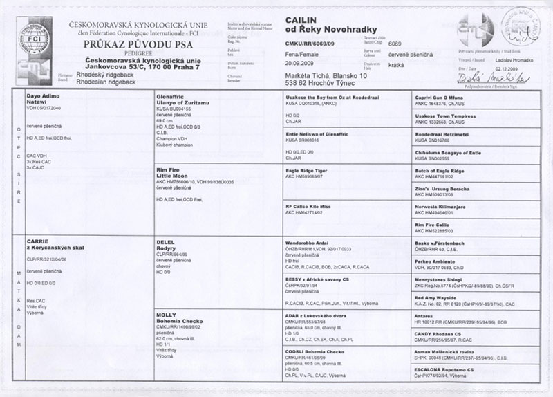 Malá Cailin přišla do naší rodiny v listopadu roku 2009. Hned od začátku bylo patrné, že obě fenky k sobě rychle najdou cestu. Opravdu se tak stalo a Aischa s Cailin jsou nerozlučné parťačky, neexistuje mezi nimi nevraživost, nebo žárlení. Cailin si po prvních týdnech našeho společného života vysloužila díky svojí nesmírné zvědavosti přezdívku – dnes ji nikdo z rodiny neřekne jinak, než "Kelišová". Je to naše zlatíčko. Povahově neskutečně milá, přítulná, přitom poslušná a hodná. S cizími psy nemá nikdy problém, natož pak s lidmi. Jenom ta zvědavost! Všude musí být, všechno vidět, dělat všeho strčit ten svůj všetečný čumáček - prostě Keliška…
