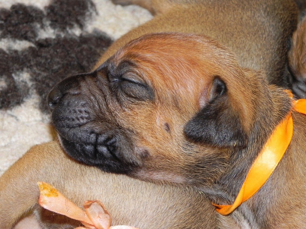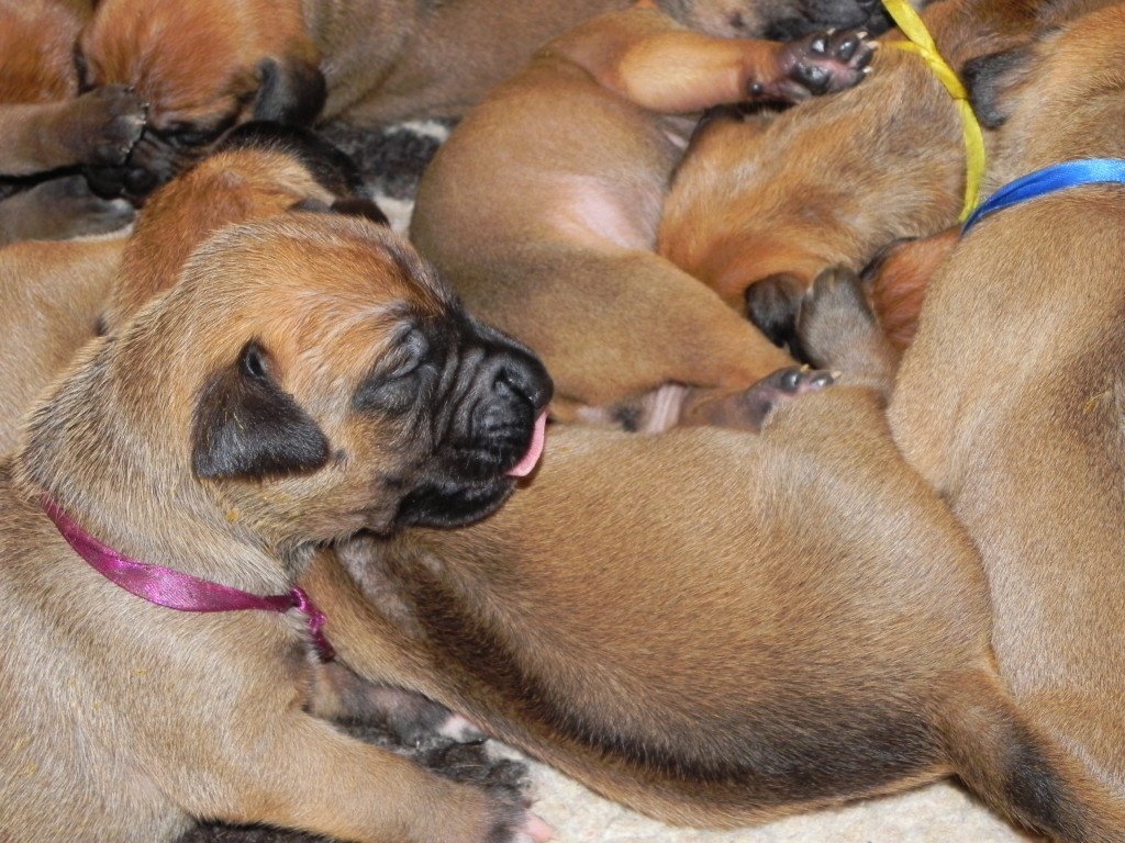 Každým dnem naši Křemešníčci rostou přímo před očima. Ještě že je dost mlíčka, mamka Banshee se snaží ze všech sil. Za dva tři dny už budou pučmelounci chodit i koukat. Jsou nádherní :)