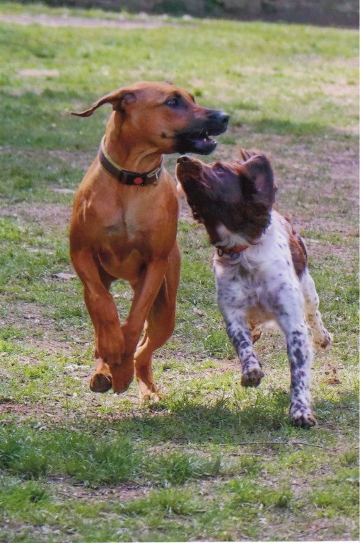 Dnešní foto - Aiši nejzamilovanější činnost na cvičáku (lítání :) ), Banshee po stopařské zkoušce a nový krycí pes pro Křemešník - Derek