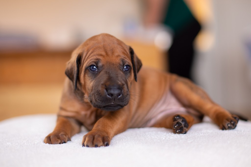 Další tři fotky - pejsci hnědá stužka a stužka zelené káro a fenka s růžovou stužkou
