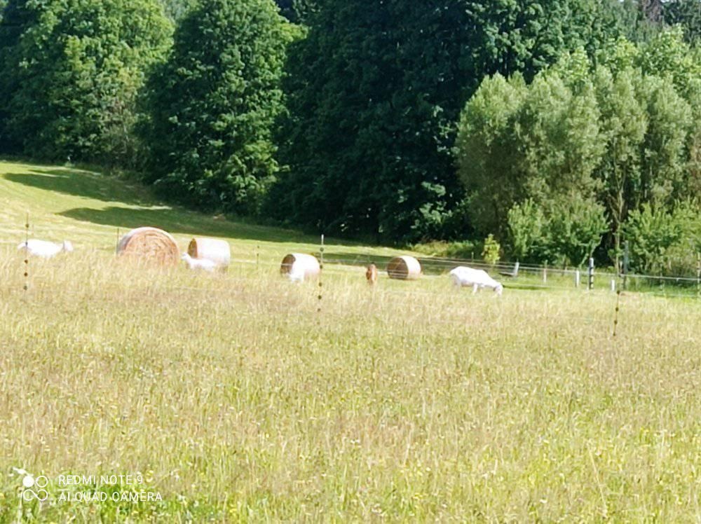 Naši odchovanci nám v době pobytu u nás dělali radost i občasné malé starosti, tak už to bývá. Krásně jedli, milovali kozí mléko, za které bych chtěla moc poděkovat paní Evičce - letos jsem pro štěňátka brala víc jak 220 litrů. Zní to neuvěřitelně, ale opravdu byla ta naše dvanáctihlavá smečka takto "vykrmována" :) Na fotce můžete vidět, v jakém krásném prostředí kozenky žijí - jejich mlíčko je vynikající.