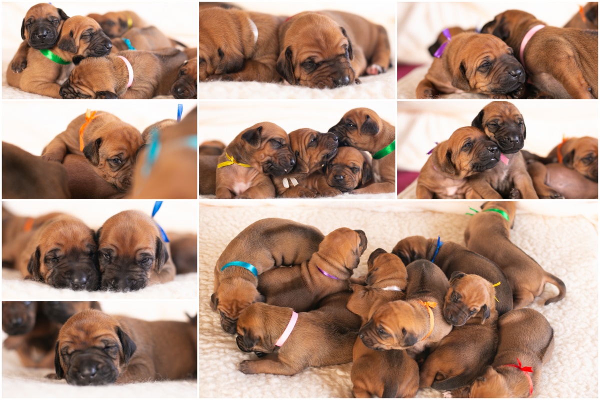 Ve druhém týdnu jsme poprvé odčervili, podruhé koncem čtvrtého týdne a jedno odčervení ještě proběhne před odchodem. Osmého listopadu k nám přijede pan doktor načipovat a naočkovat, poté je na programu druhá kontrola vrhu. Zatím jsou všechna štěňátka předběžně rezervována. Ale pokud by se stalo, že by prozatím některý standartní jedinec "spadl" po kontrole do nestandartů, uvolní se pro dalšího případného zájemce. Uvidíme, jak všechno dopadne.