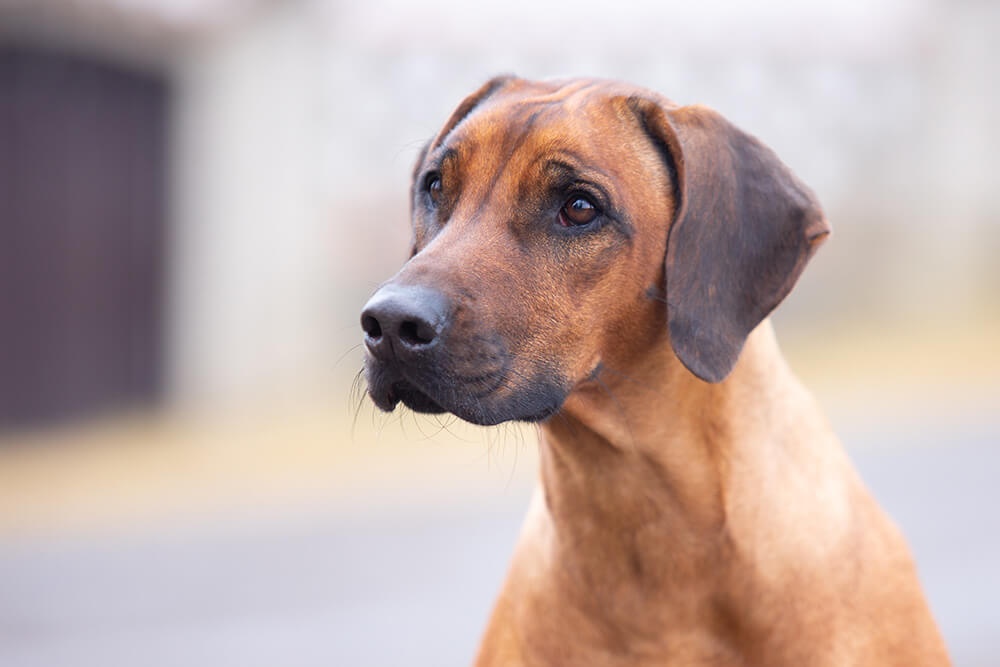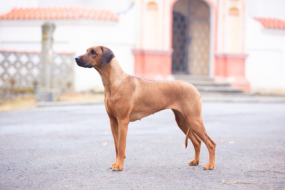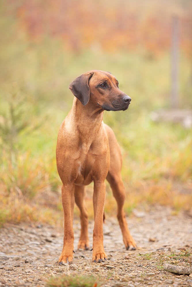 Barva srsti červená pšenice, tmavá maska, tmavé oko, malý bílý znak na hrudi