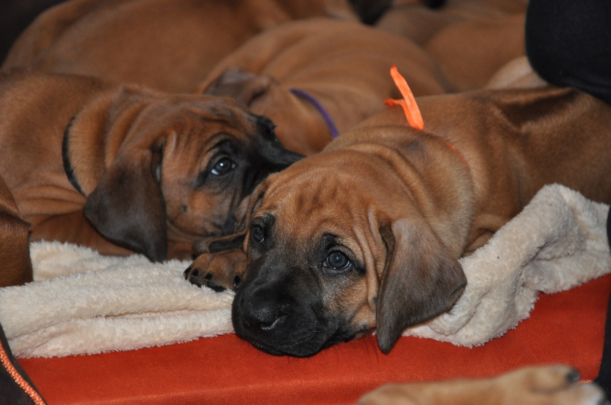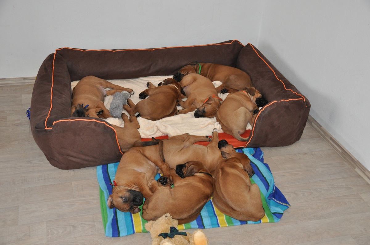 Štěňata vrhu "B" se narodila 1. ledna 2013, tři pejsci a sedm fenek. Ve vrhu nebylo žádné mrtvé ani uhynulé štěně, všichni mají ridge, krásnou tmavou barvu, minimum bílé a po tátovi černou masku.